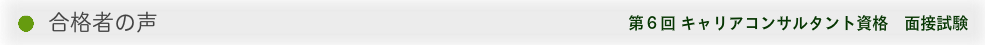 トレーニングはとても質が高く、今まで間違えて覚えていたことを、正すことができました。養成学校の練習、また受験生同士や合格1年生の先輩などの無料勉強会では、本当の意味での合格は厳しいと感じました。特に、受験生同士のロープレ練習はあんまりしない方がいいと思います。なぜなら、試験本番では受験生同士のような応答をしてくれるクライアント役はいないからです。キャリアスタジオでは本番以上に難しいトレーニングをしてくれますので、本番が簡単に思えるはずです。プロに見てもらうことがどれだけ大事かを、私は身をもって知りました。トレー二ングは1回だけではなく、ぜひ最低3、4回は受けるようお薦めします。